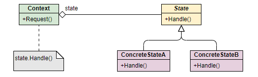 State对象的实例,这个实例定义了对象的当前状态。它将与状态相关的请求委托给当前的状态对象处理。 - State(抽象状态):定义一个接口,用于封装与